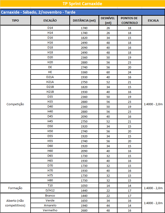 Dia 1: 2 novembro (sábado) - Sprint Carnaxide