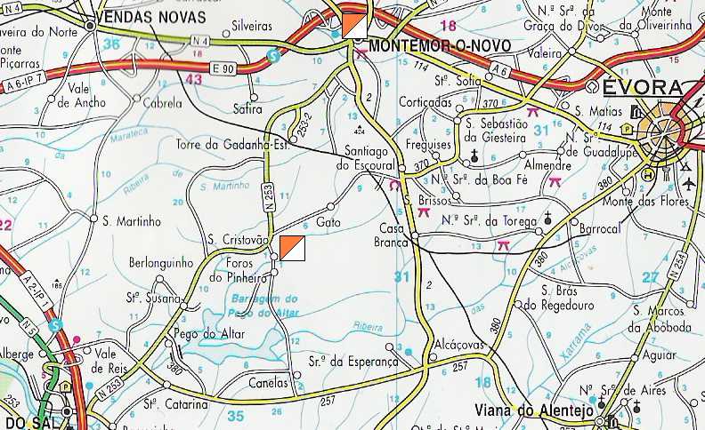 Mapa geral da localização dos eventos (São Cristóvão e Montemor-o-Novo)