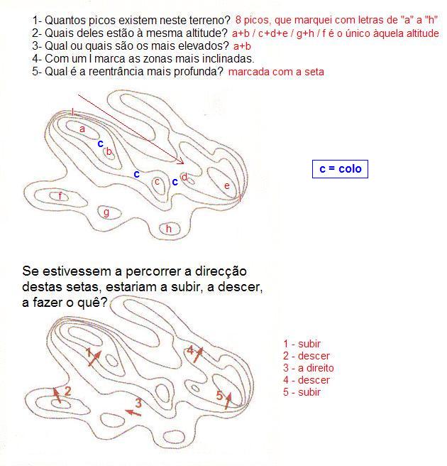 Podem existir, e normalmente é o que acontece, vários picos (curvas de nível circulares fechadas) na mesma zona alta. É para eles que devemos olhar para tentar visualizar a forma do terreno em que nos encontramos. A partir destes podemos deduzir para que lado desce ou sobe. Isto é fundamental quando planeamos a nossa opção, ou para saber se temos de subir ou descer, quanto e quantas vezes, para chegar ao ponto.