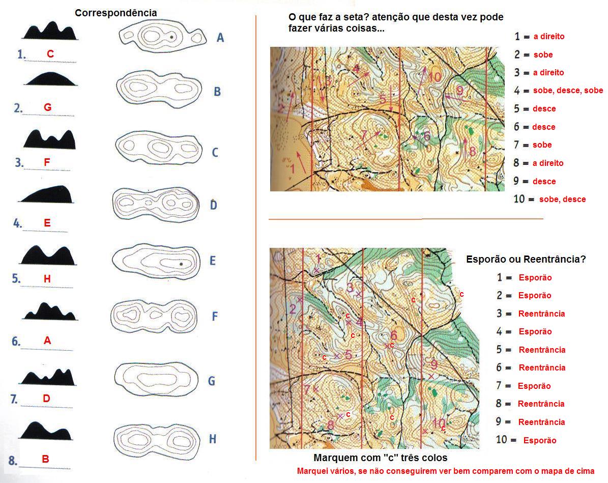 - Distinção entre cume e depressão (a depressão têm os "tracinhos" para dentro), que por vezes podem ser difíceis de ver devido à escala;