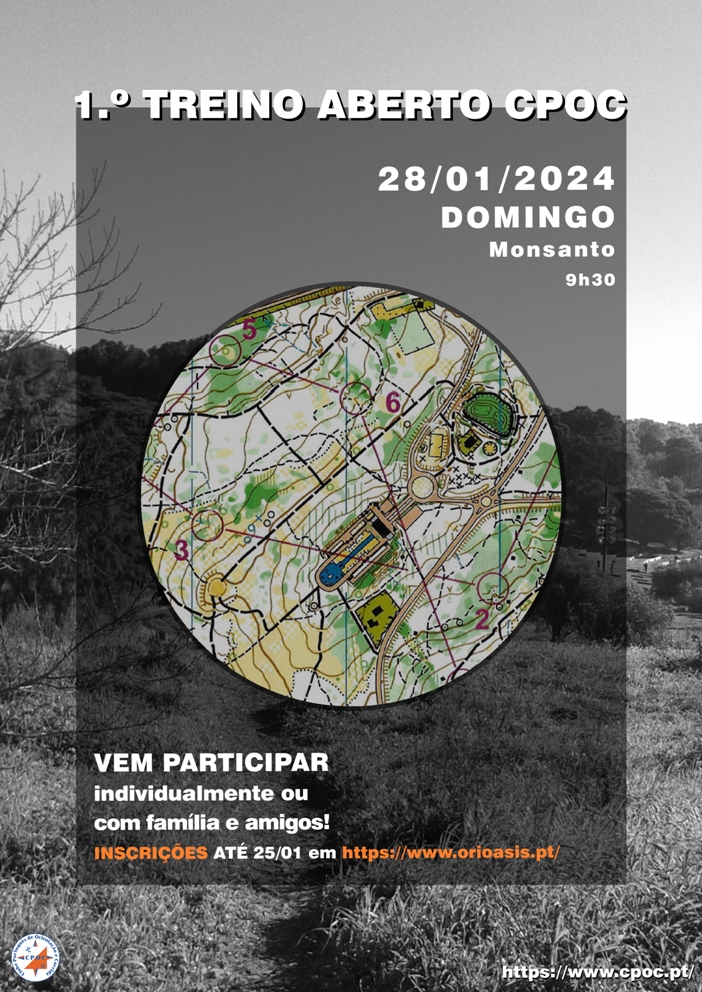 No dia 28 de janeiro de 2024, domingo, às 9h30m, realiza-se em Monsanto um treino aberto organizada pelo CPOC, com 3 níveis de dificuldade e com possibilidade de utilização de SI card.