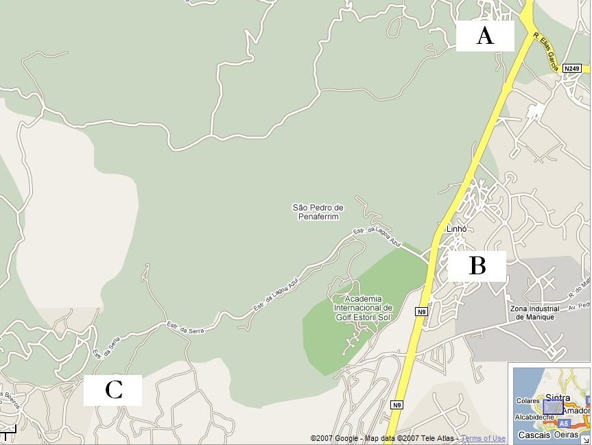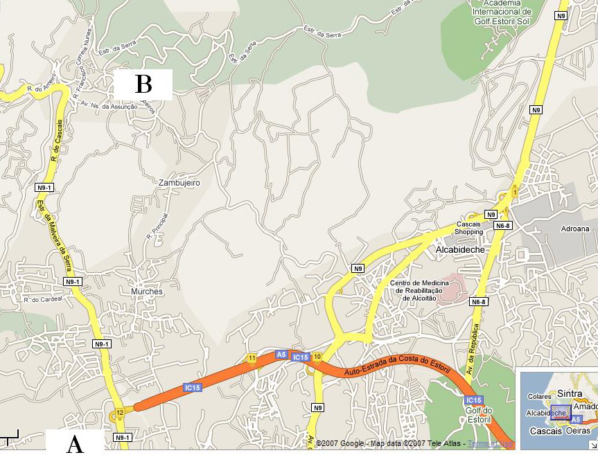 A - Final da A5/IC15 - Seguir para Norte em direcção à Malveira da Serra.