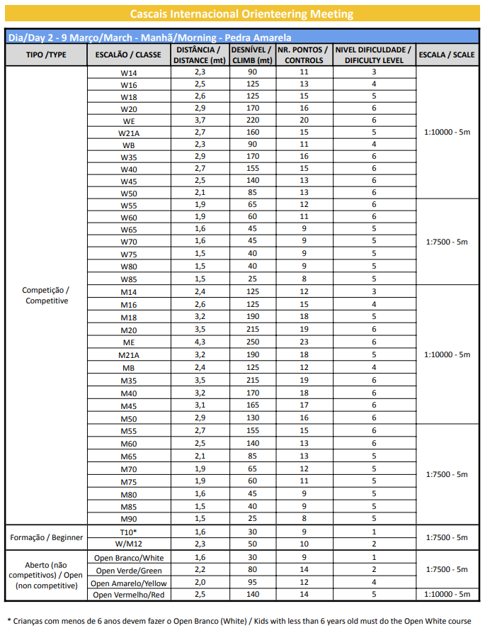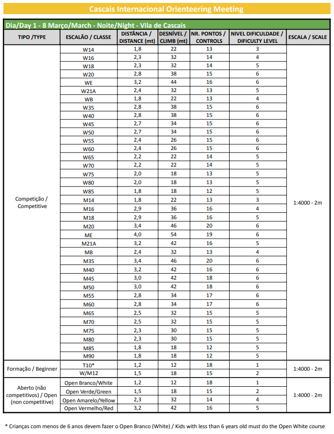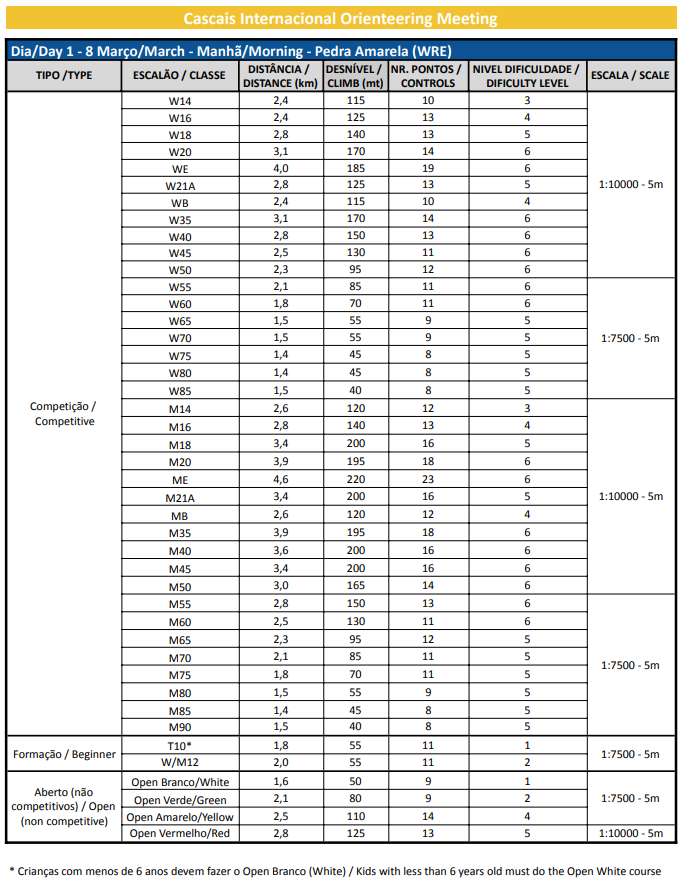Dia 1: 8 março (sábado) - Distância Média (WRE)