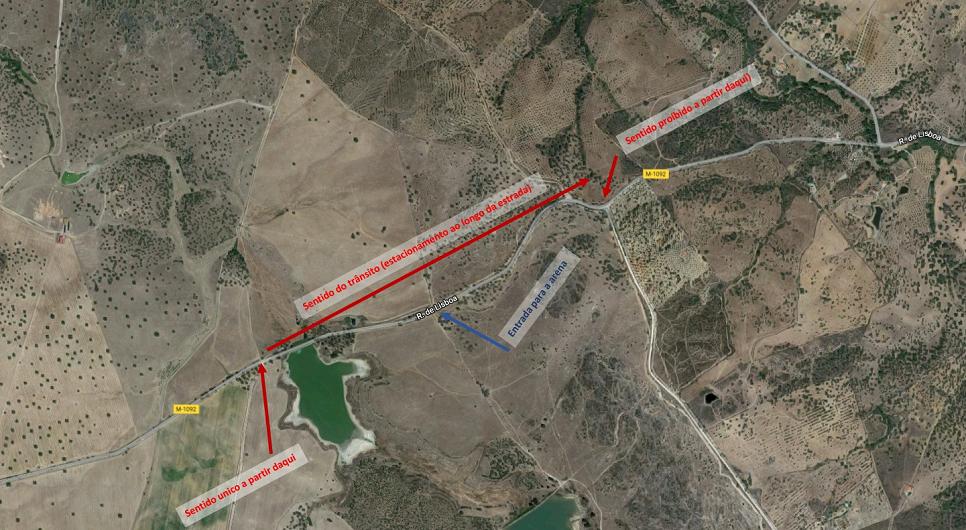 Estacionamento no Monte dos Condes (domingo): irá ser ao longo da estrada no sentido que liga Pavia à Malarranha. Trânsito de sentido único junto à arena (ver figura seguinte).