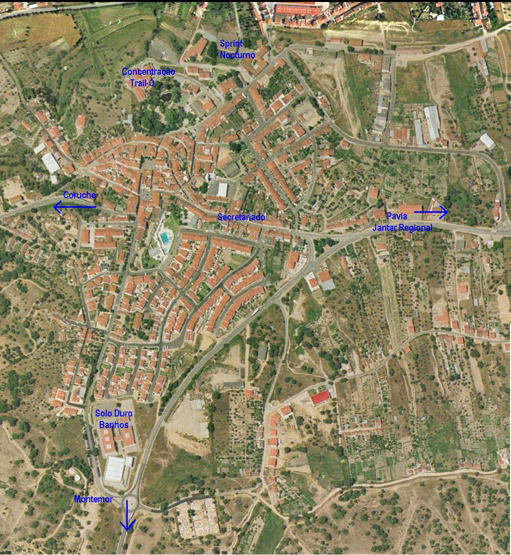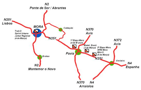 - When arriving Mora, in the road junction from N2 with N251, turn left to Pavia (14km) and follow the orange and white arrows from this road junction;
